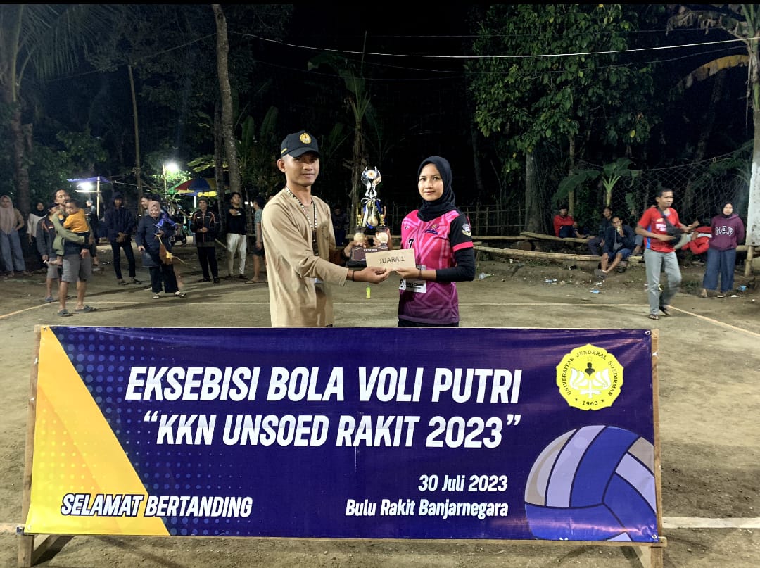 Mahasiswa KKN Universitas Jenderal Soedirman dari Desa Rakit, Kecamatan Rakit, Kabupaten Banjarnegara ikut berpartisipasi dalam kegiatan perlombaan di Dusun IV, Desa Rakit. Para mahasiswa membantu warga dan karang taruna dalam kegiatan Eksebisi Bola Voli Putri "KKN UNSOED RAKIT 2023"